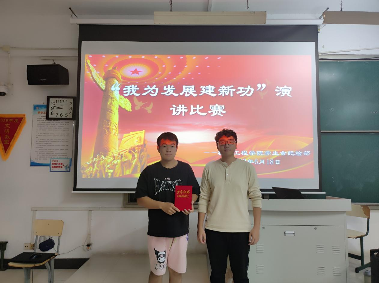 活动期间,六位选手结合自己的学习感悟,就“我为发展建新功”这一主题,讲述了献计献策、担当作为、爱岗奉献的创新故事、奋斗故事和青春故事。经过激烈的比拼和现场评分,21智能制造本科1班侯仕卿荣获一等奖;22电气工程本科1班孙子轩、22工业设计本科1班顾苏静获二等奖;22电气工程本科1班程义锐、22智能制造本科1班阚文浩、22智能制造本科1班闽宏宪三位同学获三等奖。与会评委为获奖者颁发获奖证书并表示祝贺。