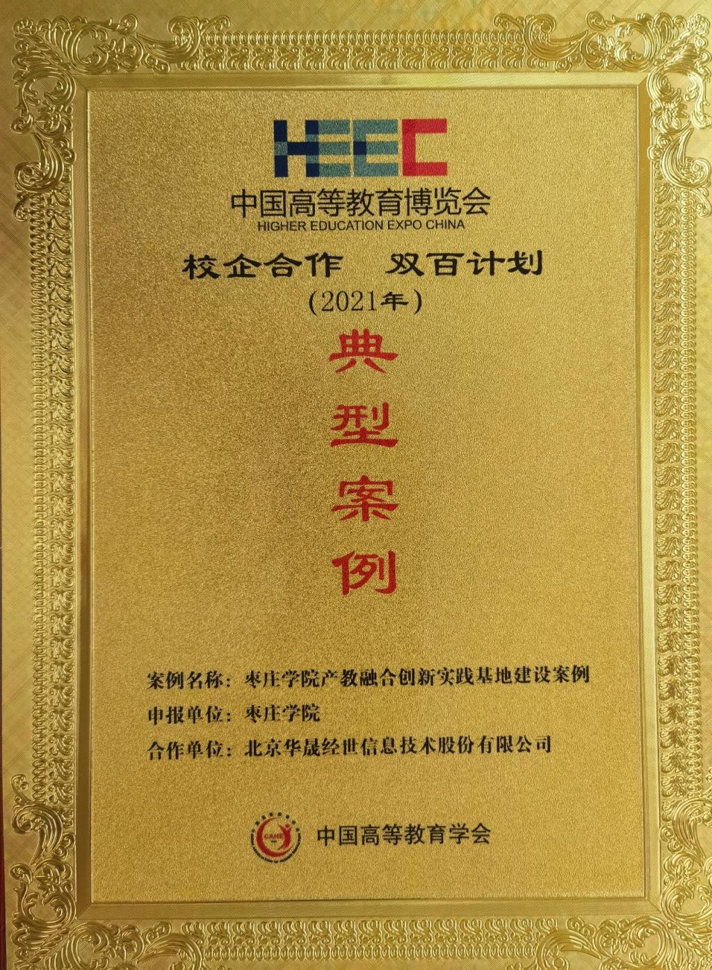 依托“互联网+中国制造2025” 产教融合创新基地,taptap点点官网与华晟经世合作申报的“taptap点点体育产教融合创新实践基地建设案例”入选2021年度中国高等教育学会“校企合作 双百计划”典型案例。