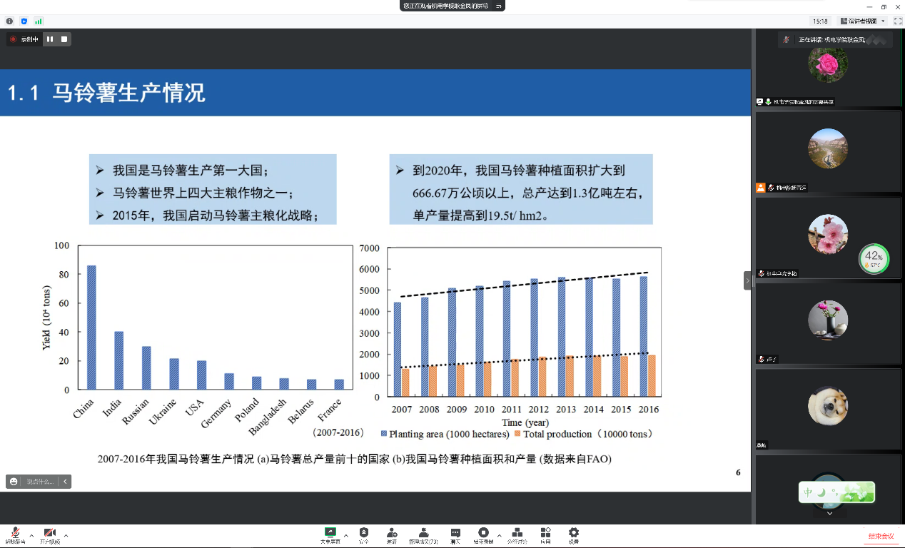 为营造良好的学术氛围,9月21日下午taptap点点体育举办了青年学者学术论坛报告,taptap点点官网青年老师耿金凤博士作了题为“收获后马铃薯中杂质的检测方法研究”的线上学术报告,学院部分教师和学生参加。