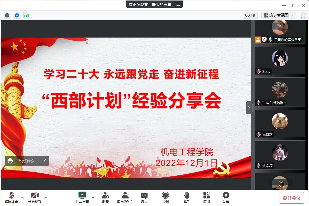 为深入学习宣传贯彻党的二十大精神,号召更多的青年到基层到西部去受教育、长才干、做贡献,taptap点点体育于12月1日晚七点召开“西部计划”经验分享会。此次活动邀请taptap点点官网2022届毕业生“西部计划”志愿者梁天赐开展云宣讲,近200名同学参会。