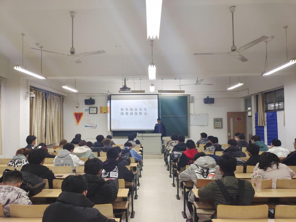 本次会议主要围绕“宿舍安全隐患有哪些"、安全隐患带来的直观伤害”和“宿舍安全隐患排查方案”三方面展开。会议过程中,主持人指出宿舍安全隐患主要包括闸刀口堆积物、大功率电器的使用、抽烟以及空插等,针对这些问题,主持人向大家强调了其所带来的危害,并向同学们展示了宿舍安全隐患的排查方案。会议结束后,主持人提议各班生活委员在班级内进行秋冬宿舍整治相关内容的讲解,并要求各班同学签署宿舍安全协议,在最大程度上保证同学们在宿舍时的安全。