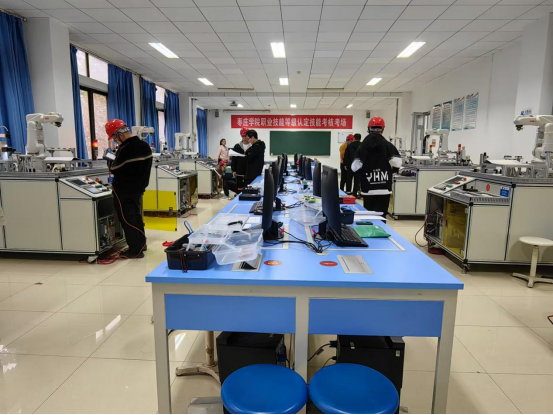 为提升应用型人才培养质量,服务区域技能人才技能提升,taptap点点体育11月16、17日两天开展了工业机器人系统操作员、工业机器人系统运维员、化工总控工三个职业7个等级的职业技能等级认定,共有252人参加了理论和实操考试。市中区人社局对考试进行全程指导、巡考。