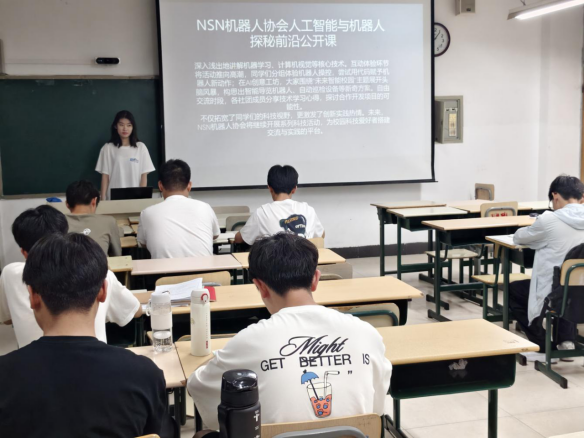 为激发同学们对前沿科技的探索热情,4月28日,NSN机器人协会在理工楼2405教室成功举办“智创未来”人工智能与机器人探秘前沿公开课,由社团成员担任主讲人,同学们踊跃参与。