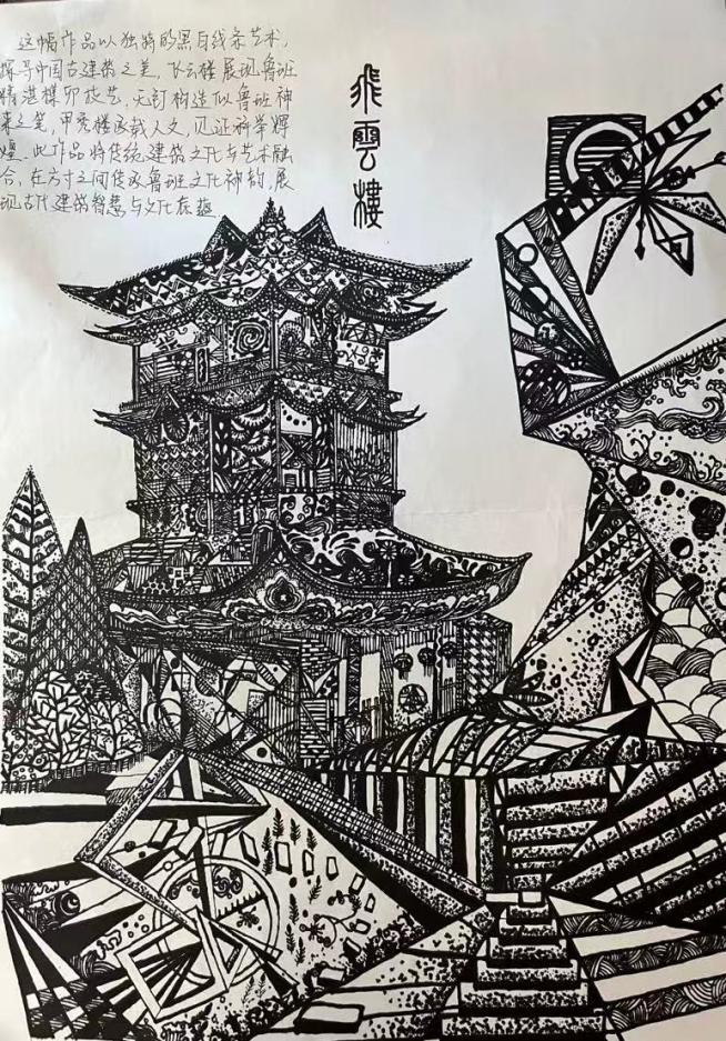 本次大赛鼓励学生围绕书法、绘画、文创、建模、海报设计等方向创作,融合古风审美、机械科技与学院特色元素。参赛作品覆盖文创产品、工业设计、艺术创作等多个领域:文创产品设计中,带有鲁班锁图案的笔记本、饰有墨子名言的书签等作品,将文化元素与实用功能巧妙结合;工业设计领域,选手从班墨科技发明中汲取灵感,设计出创新鲁班锁;艺术创作方面,绘画、书法作品生动再现班墨人物与故事场景。
