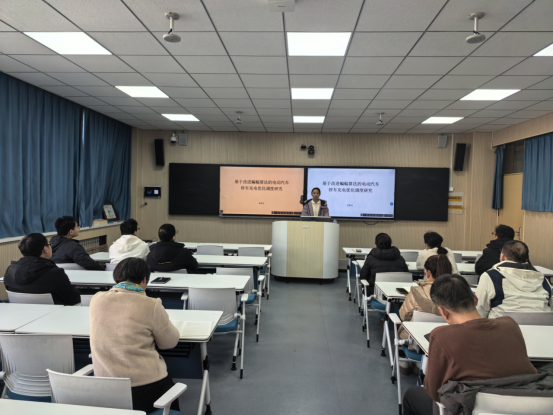 李春亭围绕“基于改进蝙蝠算法的电动汽车停车充电优化调度研究”展开汇报,针对充电设施不足、车位利用率低等问题,提出停车位与充电桩协同共享策略,设计了包含App的管控系统与优化调度模型。其改进的蝙蝠算法(LGCBA)通过合理编码解码,在仿真中实现了停车充电时间、费用、路程的多目标优化,验证了模型的可行性与优越性。