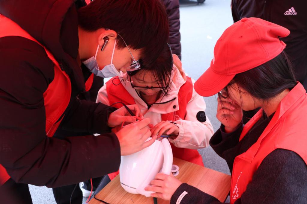 活动现场,志愿者团队分成维修组、咨询组和互动组展开服务。维修组的“工程师”们手持工具,认真地为居民们送修的电饭煲、电风扇、台灯等小家电“把脉问诊”,精准定位故障,并熟练地进行维修。看着一件件“罢工”的电器重新焕发生机,居民们脸上露出了欣慰的笑容。咨询组志愿者们则化身“科普达人”,耐心地为社区老人讲解安全用电常识,解答他们在使用家电过程中遇到的疑难杂症,帮助他们更好地享受科技带来的便利生活。互动组志愿者们更是别出心裁,他们准备了益智玩具拼装、机械原理趣味讲解等互动环节,吸引了众多小朋友的积极参与。孩子们在动手实践中感受机械的魅力,在欢声笑语中激发了对科学的浓厚兴趣。据统计,本次活动累计修复电器十余件,接受咨询三十余人次,服务社区居民百余人。志愿者们精湛的技术、热情的服务和耐心的讲解,赢得了社区居民的一致好评。